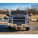 ERD POLISHED FRONT BUMPER WITH GRILLGUARD ; 20-23 SIERRA HD W/OEM LIGHT CUTOUTS AND SENSORS