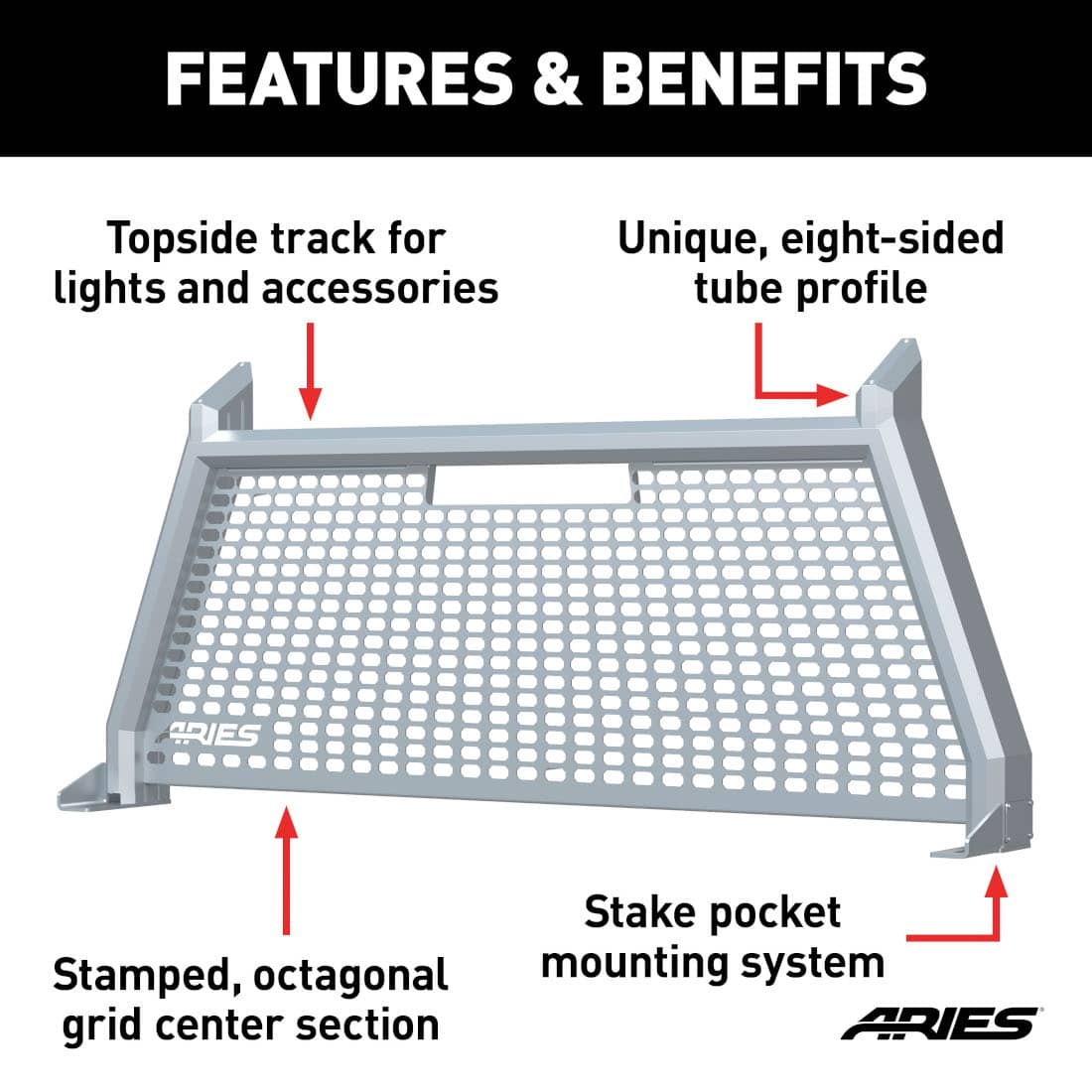 ARIES CHROME ADVANTEDGE HEADACHE RACK ; 09-25 F150/ 22-25 F150 LIGHTNING Eight-Sided Tube Profile To Complement...