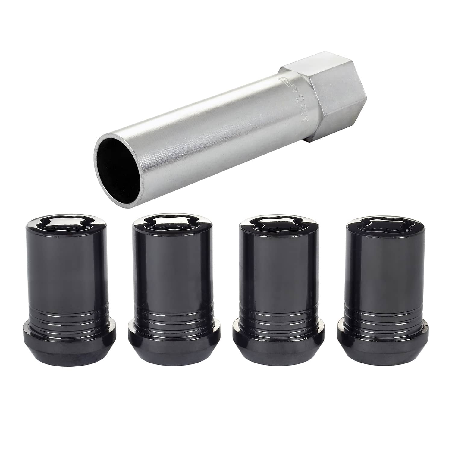 • Black Tuner Style Cone Seat Wheel Lock Set (M12 x 1.25 Thread Size) - Set of 4 Locks and 1 Key