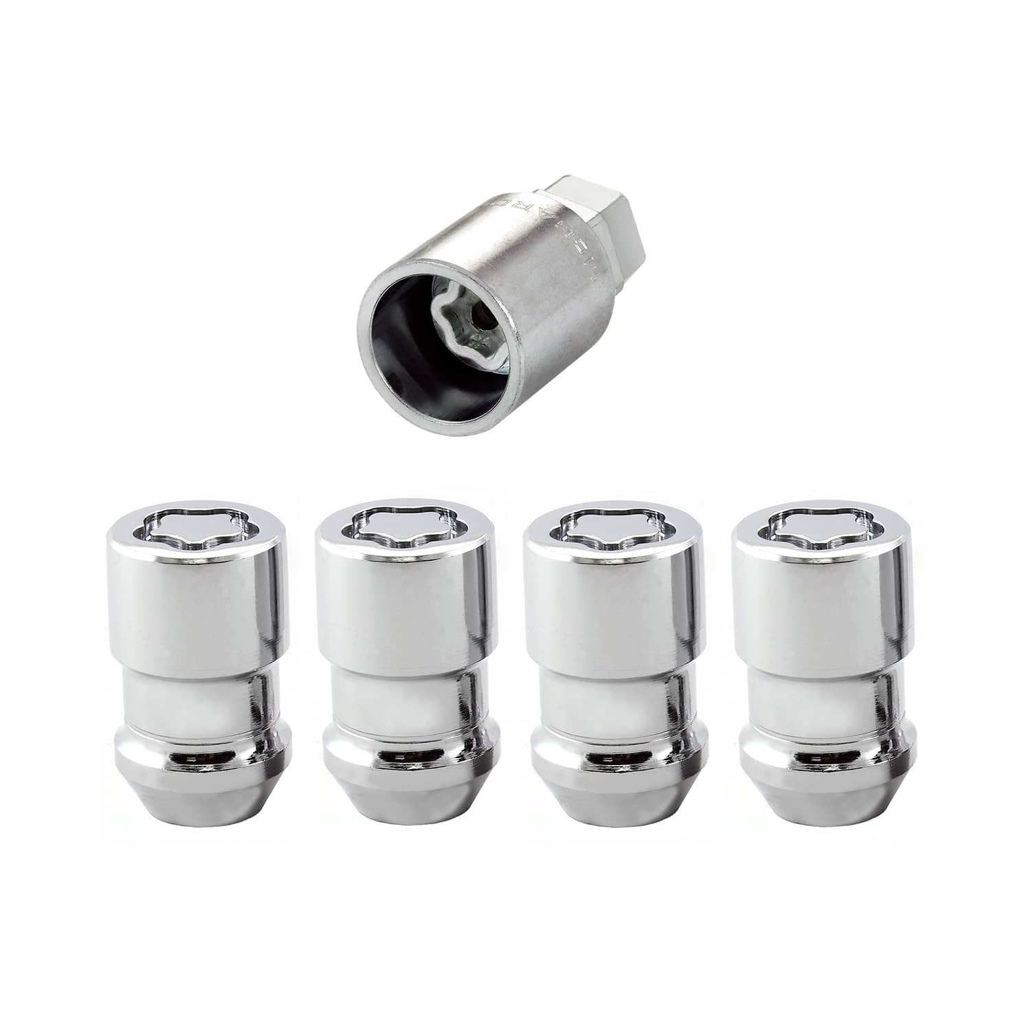 • Chrome Cone Seat Wheel Lock Set (M12 x 1.5 Thread Size) - Set of 4 Locks and 1 Key