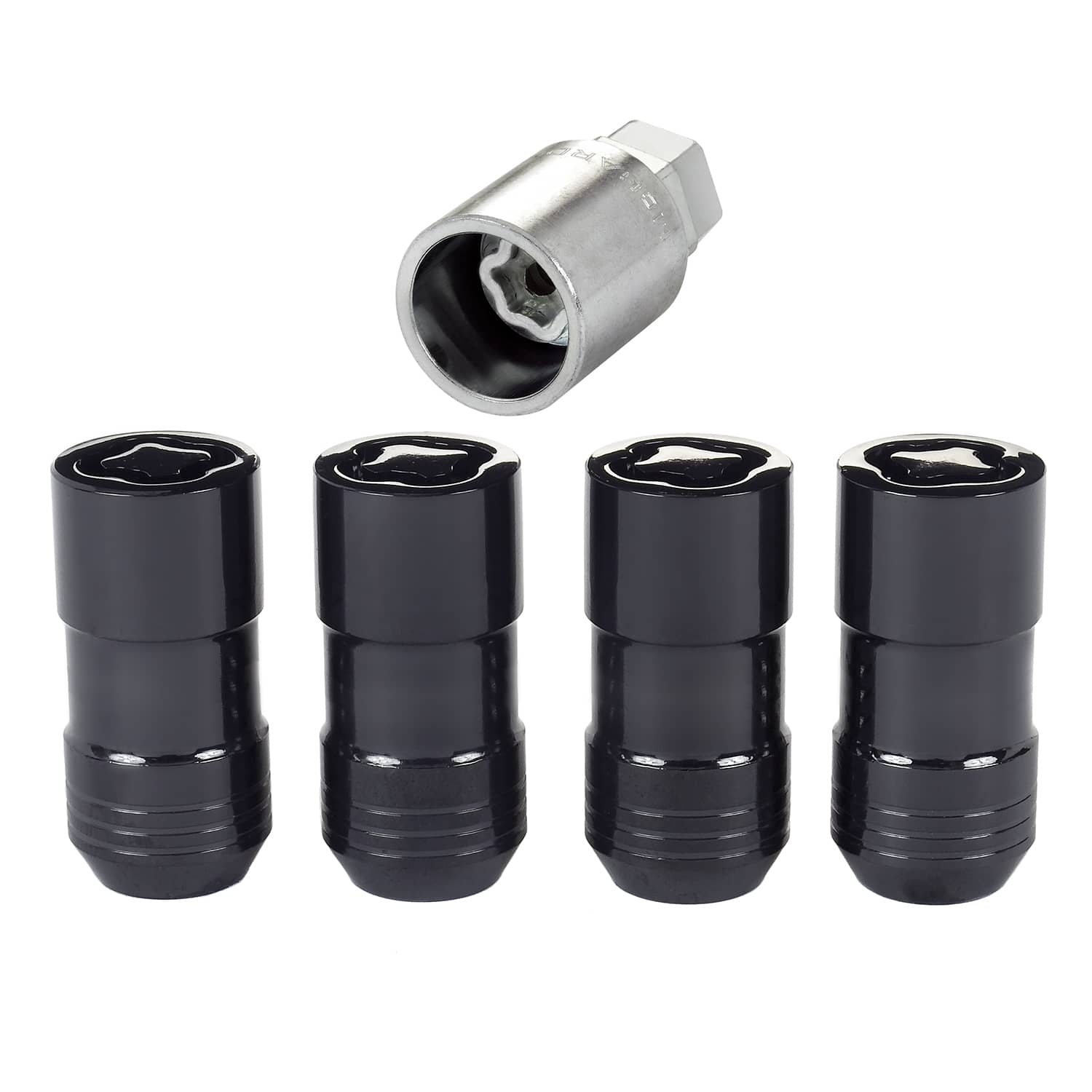 • Black Cone Seat Wheel Lock Set (M14 x 1.5 Thread Size) - Set of 4 Locks and 1 Key