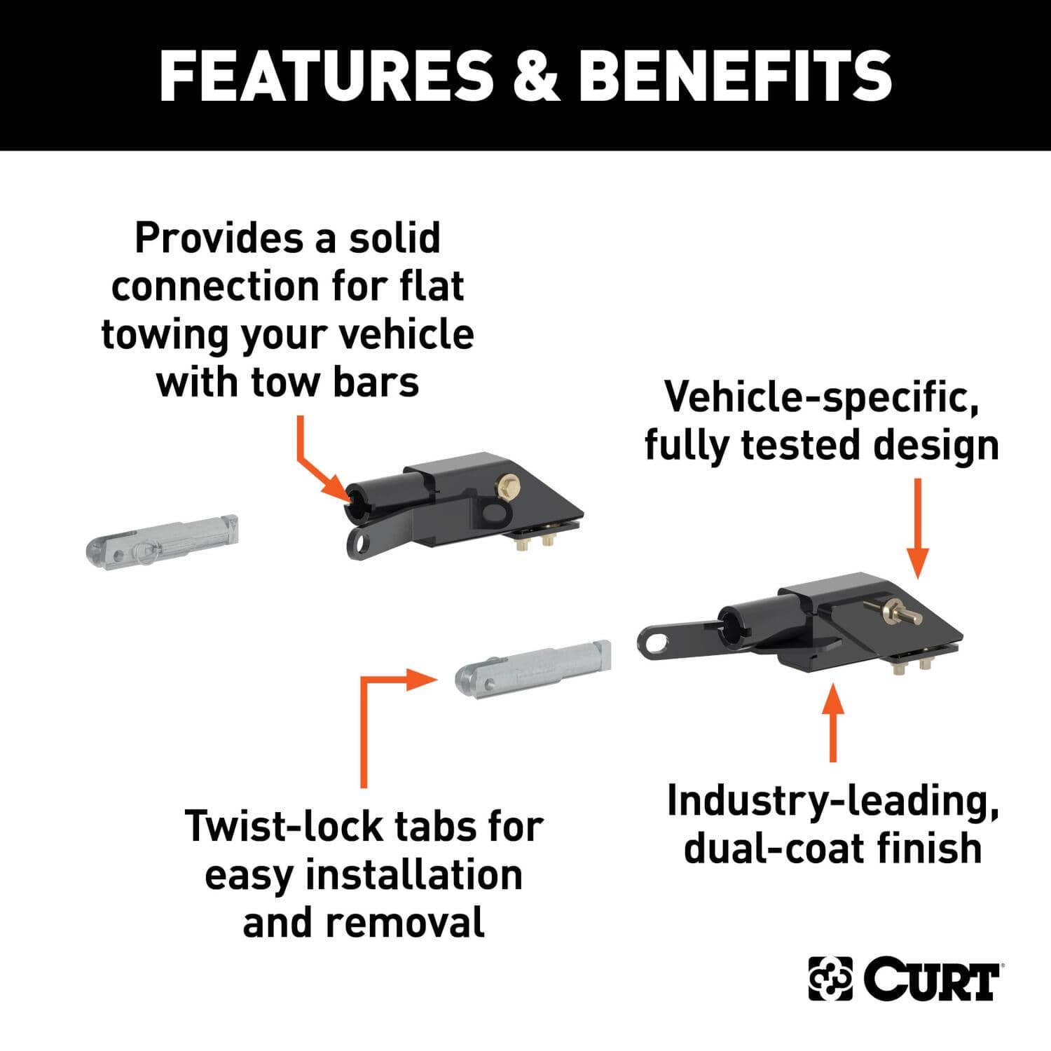 • Provides a solid connection for dinghy towing your vehicle with tow bars