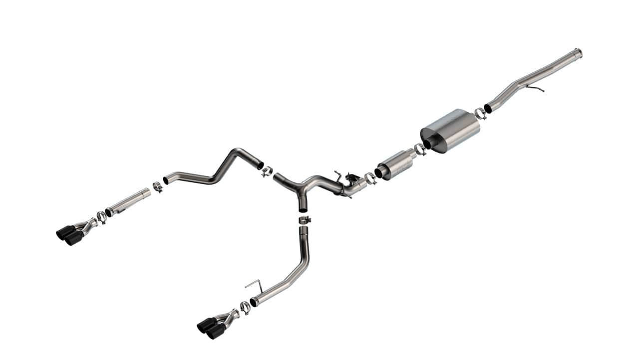 BORLA CAT-BACK S-TYPE DUAL EXHAUST WITH BLACK TIPS ; 24-25 SILVERADO/SIERRA 1500 6.2L EXTENDED/CREW CAB (EXC ZR2/AT4X) (CREW CAB 6'7" MODELS REQUIRE BOR-60706 ADAPTER)